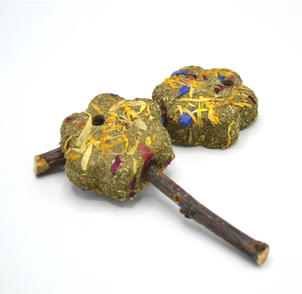 Bella Both my bunnies love these & I like that the ingredients are safe for them. Made with Marigold, Rose, Cornflower petals and Timothy Hay.