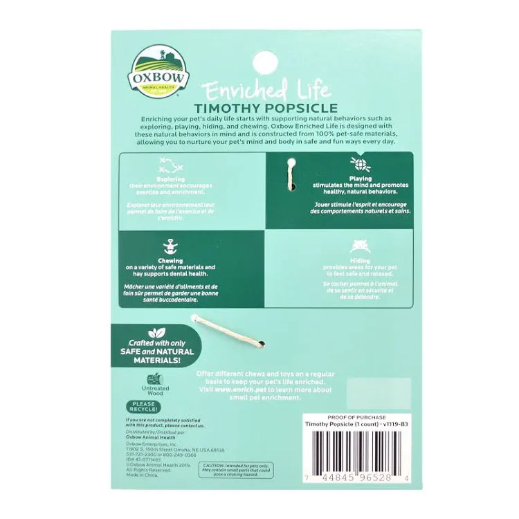 / Oxbow Enriched Life - Timothy Popsicle | All Natural and Safe for Rabbits, Guinea Pigs, Chinchillas, and other Small Pets